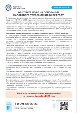 ОБ УПЛАТЕ НДФЛ НА ОСНОВАНИИ НАЛОГОВОГО УВЕДОМЛЕНИЯ В 2025 ГОДУ