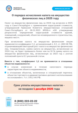О порядке исчисления налога на имущество физических лиц в 2025 году